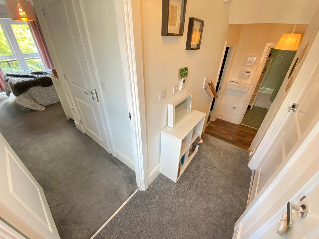 Double glazed window to side elevation. Doors leading to bedrooms one, two, bathroom and storage cupboard. Carpet flooring and thermostat.