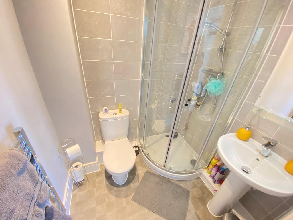 4' 7'' x 5' 6'' (1.4m x 1.7m) Pedestal wash hand basin with a mixer tap. Cubical shower with extractor fan and a low level w/c. Vinyl flooring, spot lighting and a heated towel radiator.