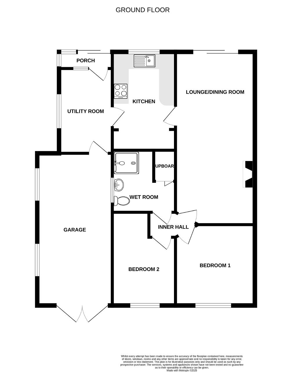 8' 2'' x 8' 2'' (2.5m x 2.5m) Double glazed frosted window to garage. Wall mounted hand wash basin with low level w/c. Walk in shower. Storage cupboard. Tiled flooring and a heated towel rail.
