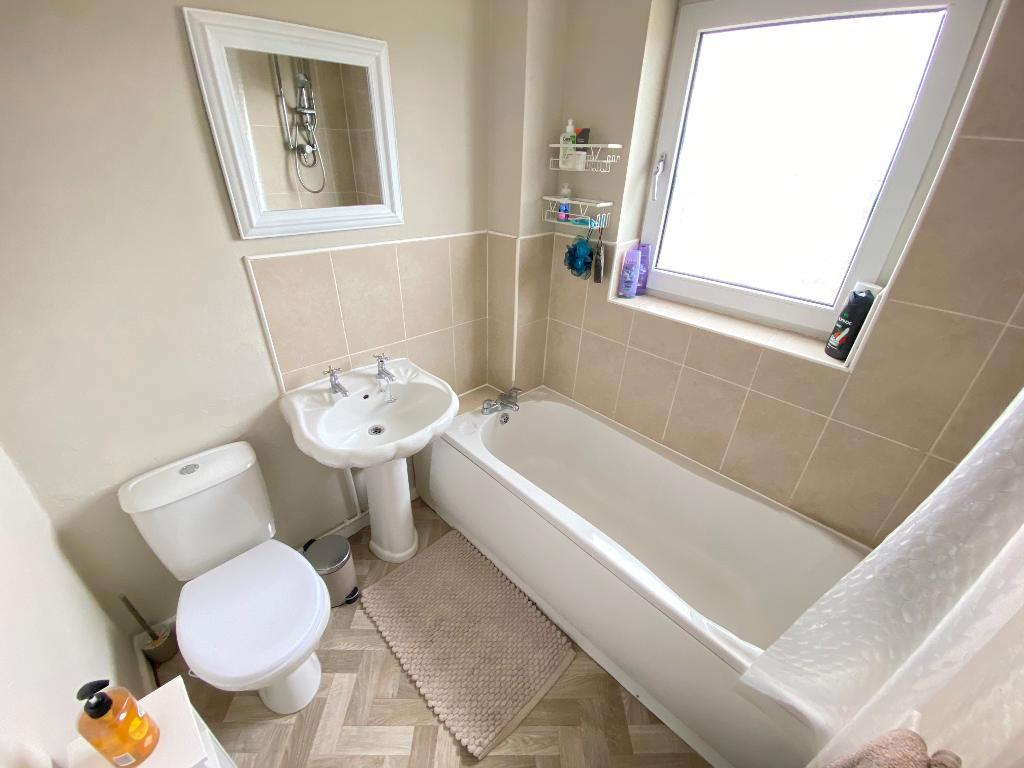 5' 10'' x 6' 2'' (1.8m x 1.9m) Double glazed window to rear elevation. Pedestal wash hand basin with low level w/c. Bath. Part tiled walls. Vinyl flooring and a wall mounted radiator.