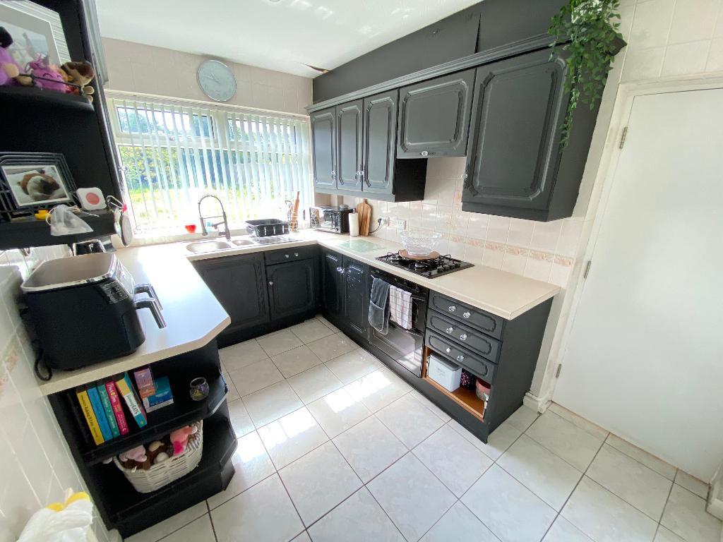 11' 5'' x 7' 6'' (3.5m x 2.3m) Double glazed window to rear elevation. Roll top work surfaces with a sink, drainer and mixer tap. A range of matching wall and base units. Four burner hob and extractor fan. Spot lighting. Tiled flooring, power points and a wall mounted radiator.