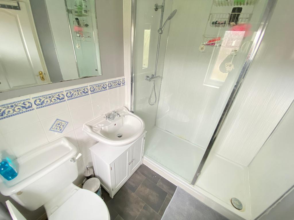 5' 2'' x 7' 2'' (1.6m x 2.2m) Double glazed frosted window to rear elevation. Pedestal wash hand basin with low level w/c. Shower cubical. Vinyl flooring and a wall mounted radiator.