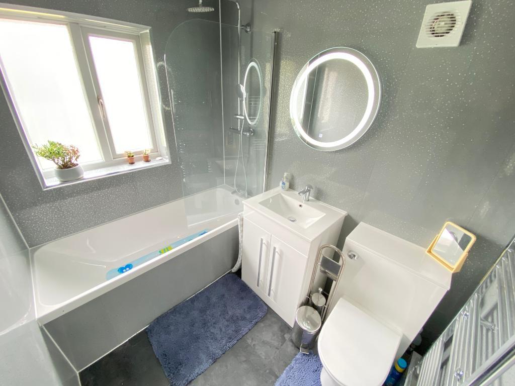 5' 2'' x 7' 2'' (1.6m x 2.2m) Double glazed window to rear elevation. Vanity wash hand basin with low level w/c. Bath and shower to wall. Extractor fan. Spot lighting. Fully cladded walls. Vinyl flooring and a heated towel rail.