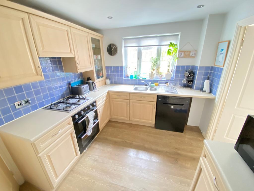 10' 2'' x 8' 10'' (3.1m x 2.7m) Double glazed window to rear elevation. Roll top work surfaces with a sink, drainer and mixer tap. A range of matching wall and base units. Double electric oven and four burner hob. Tiled splash backs. Spot lighting. Plumbing for a washing machine. Storage. Laminate flooring, power points and a wall mounted radiator.
