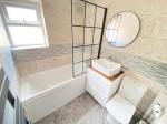5' 2'' x 4' 3'' (1.6m x 1.3m) Double glazed window to side elevation. Vanity wash hand basin with storage and a low level w/c. Bath with shower and shower screen. Tiled flooring and a heated towel rail.
