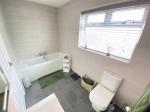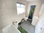 8' 10'' x 4' 11'' (2.7m x 1.5m) Double glazed window to rear elevation. Pedestal wash hand basin with low level w/c. Shower cubical with waterfall shower. Spot lights. Vinyl flooring and a heated towel rail.