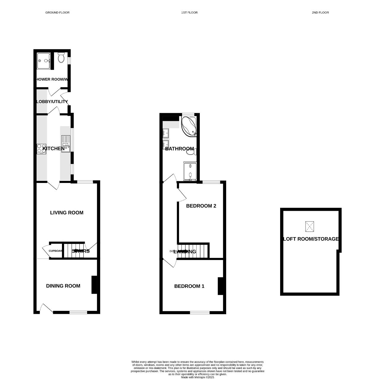 6' 2'' x 6' 10'' (1.9m x 2.1m) Double glazed window to side elevation. Vanity wash hand basin with mid level w/c. Fully tiled shower cubical. Tiled flooring and a wall mounted radiator.