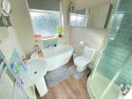 7' 10'' x 5' 10'' (2.4m x 1.8m) Double glazed frosted window to rear elevation. Pedestal wash hand basin with low level w/c. Oval bath with shower cubical. Laminate flooring and a heated towel rail.