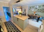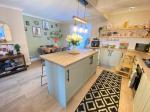 17' 0'' x 16' 4'' (5.2m x 5m) Double glazed window to side elevation. Roll top work surfaces with a sink, drainer and mixer tap. A range of matching wall and base units with drawers. Oven with four burner hob and extractor fan. Integrated fridge/freezer. Plumbing for a washing machine. Tiled splash backs. Island. Laminate flooring, power points and a tall radiator.