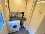 3' 11'' x 4' 11'' (1.2m x 1.5m) Door to side elevation. Roll top work surfaces with wall units. Tiled splash backs. Tiled flooring and a wall mounted radiator.