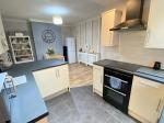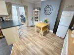 12' 1'' x 18' 8'' (3.7m x 5.7m) French doors to conservatory and a double glazed window to the side elevation. Roll top work surfaces with a sink, drainer and mixer tap. A range of matching wall and base units. Double oven and electric hob with extractor fan. Plumbing for a washing machine. Boiler to the wall. Tiled and laminate flooring, power points and a wall mounted radiator.