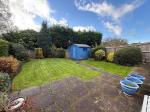 To the front, a block paved driveway. To the rear, a laid to lawn, patio area, fenced panels and a garage with electric doors.