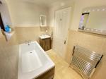 8' 6'' x 4' 11'' (2.6m x 1.5m) Double glazed window to side elevation. Vanity wash hand basin with low level w/c. Bath. Spot lighting. Part tiled walls. Vinyl flooring and a heated towel rail.