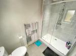 4' 11'' x 8' 2'' (1.5m x 2.5m) Double glazed frosted window to rear elevation, Pedestal wash hand basin with low level w/c. Double shower cubical with waterfall shower and shower attachment. Spot lighting. Part tiled walls. Tiled flooring and a heated towel rail.