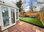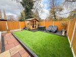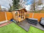 To the front, a pressed concert driveway and garage access. To the rear, an artificial lawn, decked patio area, Indian stone patio area, summerhouse with power and fenced panelling.
