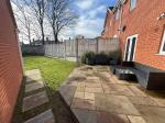 To the front, a garage and laid to lawn. To the rear, a laid to lawn, patio area and fenced panelling.