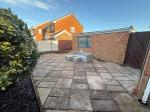 To the front, a tarmac driveway, garage access, laid to lawn and shrubbery. To the rear, a paved garden and shrubbery.