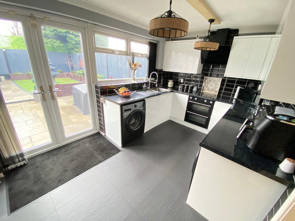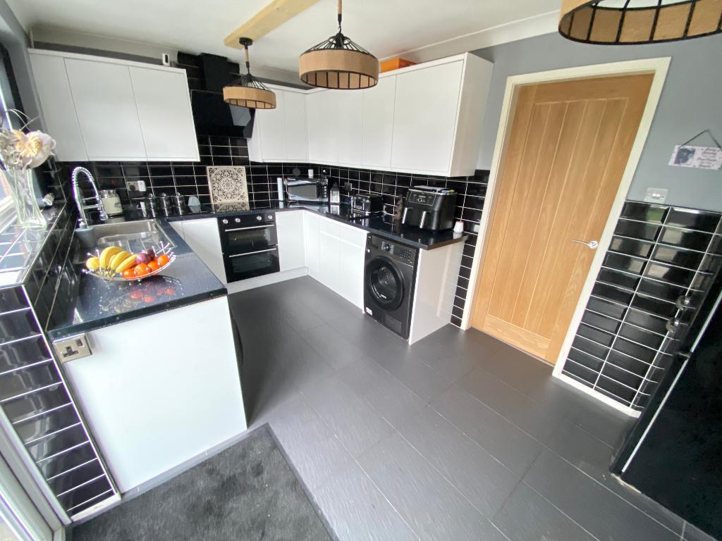 14' 5'' x 8' 2'' (4.4m x 2.5m) Double glazed window and French doors to rear elevation. Rolltop work surfaces with a sink, drainer and mixer tap. A range of matching wall and base units. Electric oven and hob. Tiled splash backs. Integrated dishwasher. Plumbing for a washing machine. Tiled flooring, power points and a wall mounted radiator.