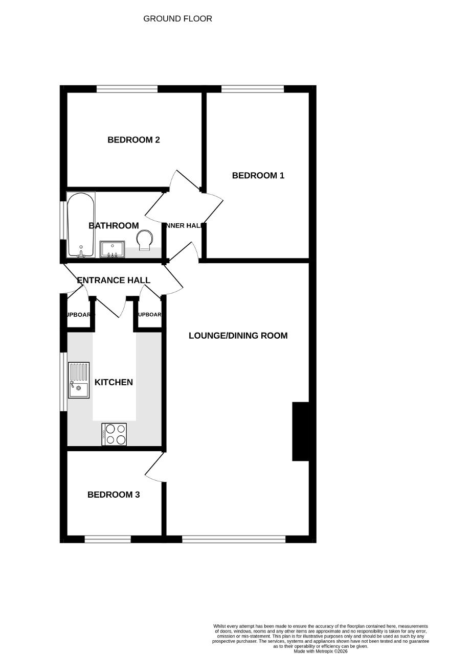 7' 6'' x 11' 1'' (2.3m x 3.4m) Double glazed window to side elevation. Roll top work surfaces with a sink, drainer and mixer tap. A range of matching wall and base units. Electric oven and hob with extractor fan. Tiled splash backs. Integrated fridge/freezer, washing machine and dishwasher. Spot lighting. Laminate flooring, power points and a wall mounted radiator.