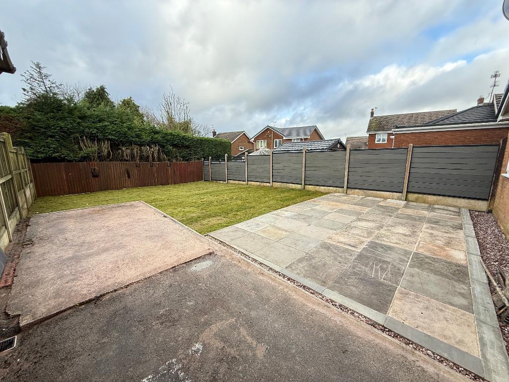 To the front a driveway and laid to lawn. To the rear, a laid to lawn, patio area and fenced panelling.