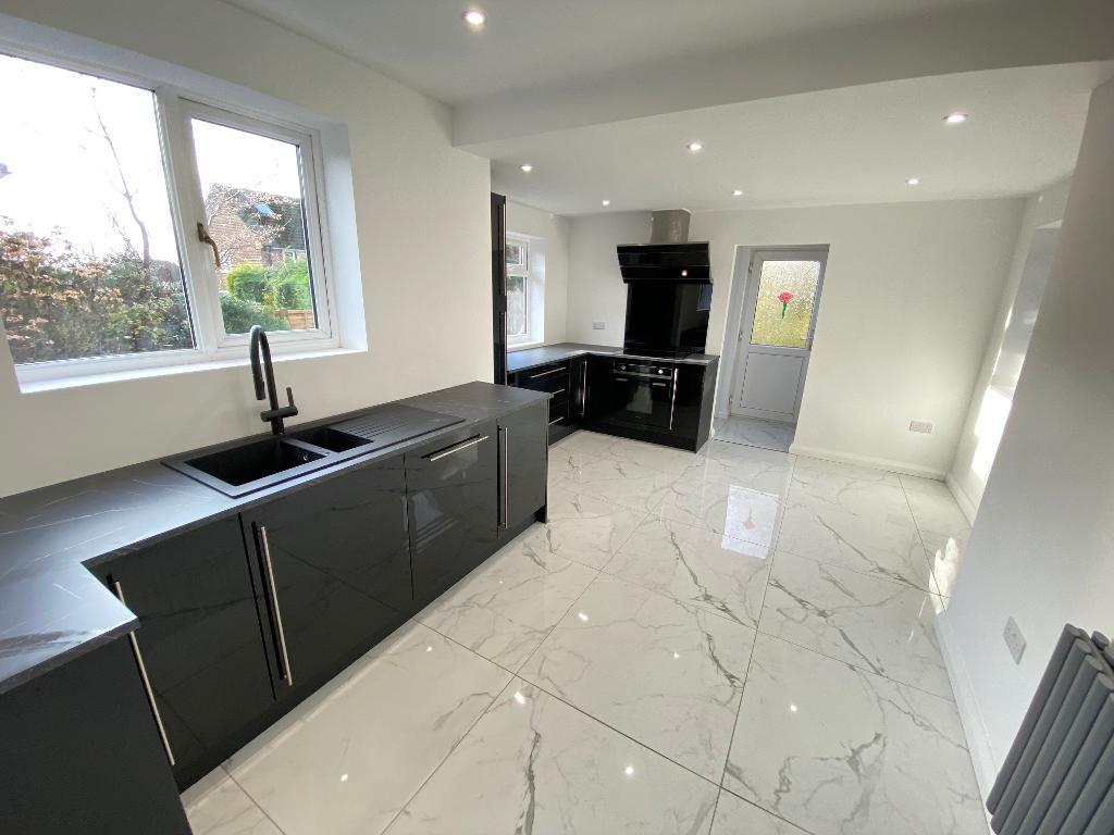 8' 6'' x 16' 8'' (2.6m x 5.1m) Three double glazed windows to side elevation. Door to rear elevation. Roll top work surfaces with a sink, drainer and mixer tap. A range of matching wall and base units. Oven and induction hob with extractor fan. Integrated dishwasher. Spot lighting. Tiled flooring, power points and a wall mounted radiator.
