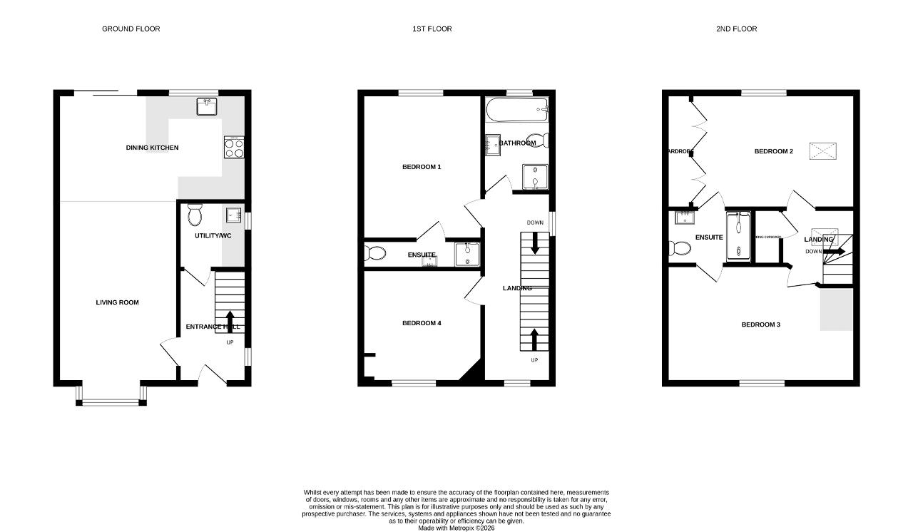 Feeney estate agents are thrilled to bring to market this fantastic family home looking for new owners to take the reins and create many more happy memories. Botham Grove, situated on a private road, is a well presented four double bedroom detached home, offering open plan living to the ground floor and plenty of space for any growing family. Internally on offer is a welcoming entrance hallway with under stairs storage, a spacious lounge with bay window to the front aspect and open plan to the dining and kitchen space. The kitchen dining space offers an array of fitted appliances and patio doors opening up on to the rear patio with glass canopy. This floor is completed by a useful utility space and downstairs w/c. To the first floor there are two double bedrooms, one complete with a useful ensuite and a separate family bathroom with white suite to include bath tub and separate shower cubicle. The second floor offers a further two bedrooms, one of which offering fitted wardrobes and a Jack and Jill shower room. The home benefits from off road parking on the tarmac driveway and a detached garage with an electric door. The rear patio is part covered, with shrubbed bordering, perfect for those summer evenings. Please call today today to book you early viewing.