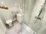 7' 2'' x 4' 7'' (2.2m x 1.4m) Vanity wash hand basin with store, mixer tap and tiled splash backs. Low level w/c. Cubicle shower with waterfall shower and shower attachment. Laminate flooring and a heated towel rail.