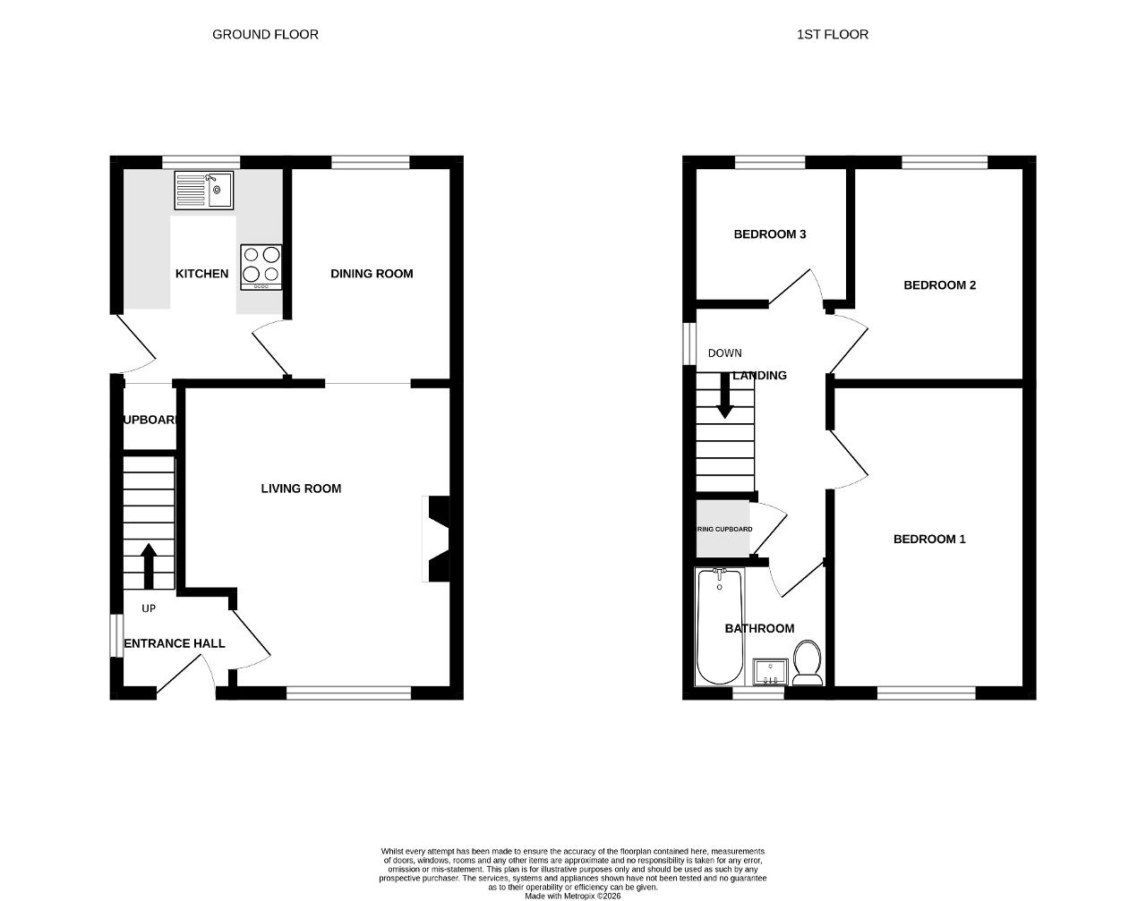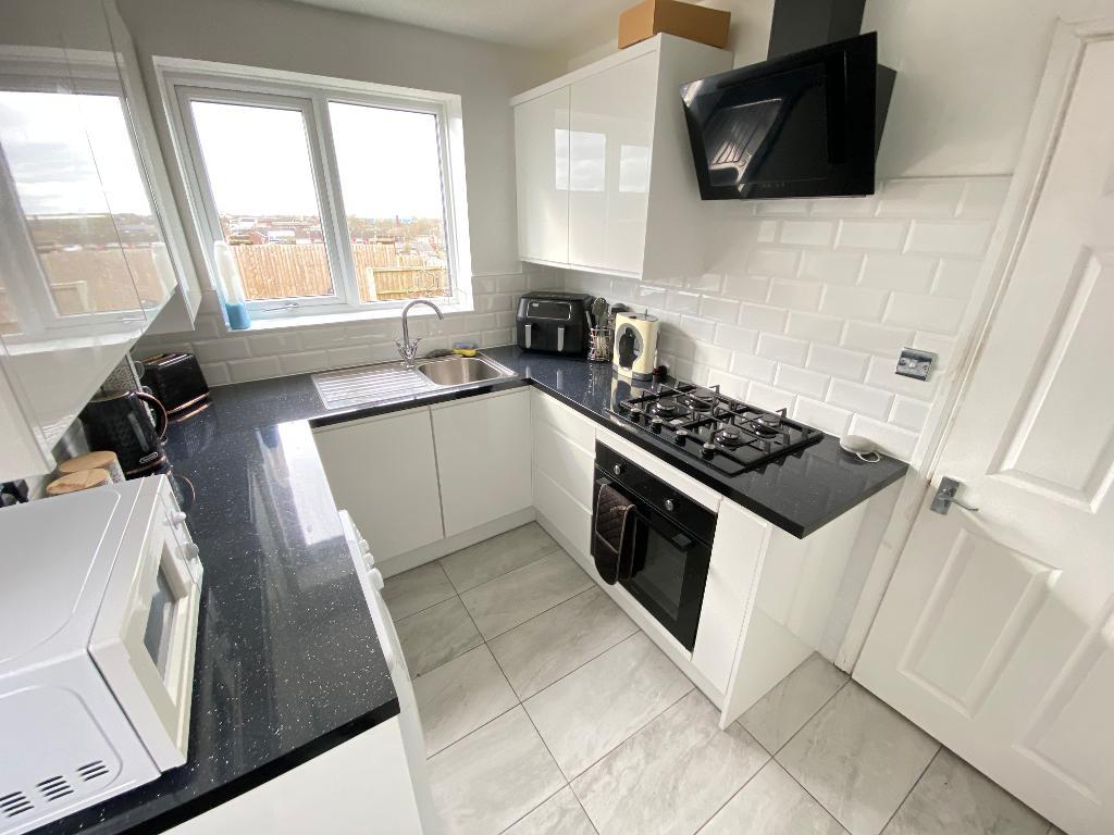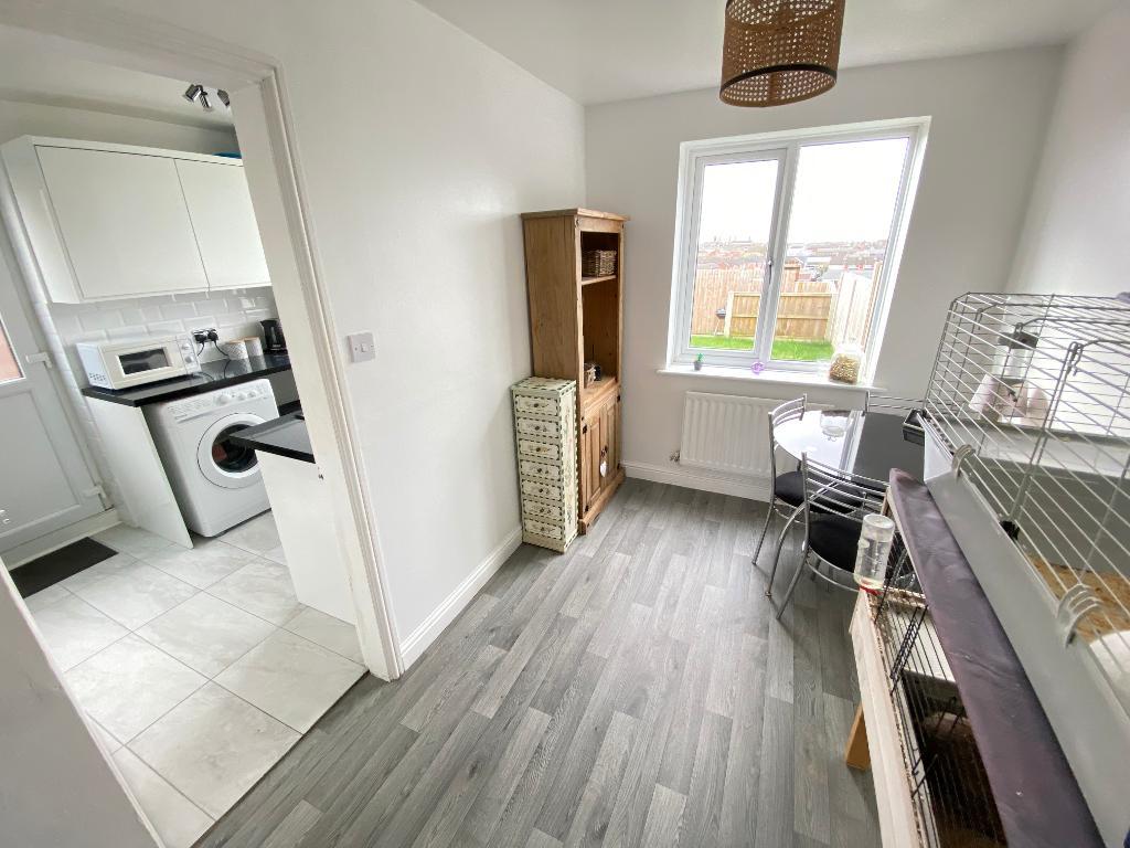 6' 10'' x 9' 2'' (2.1m x 2.8m) Door to side elevation and double glazed window to rear elevation. Roll top work surfaces with a sink, drainer and mixer tap. A range of matching wall and base units. Oven and four burner hob with extractor fan. Tiled splash backs. Under stairs storage. Tiled flooring, power points and a wall mounted radiator.