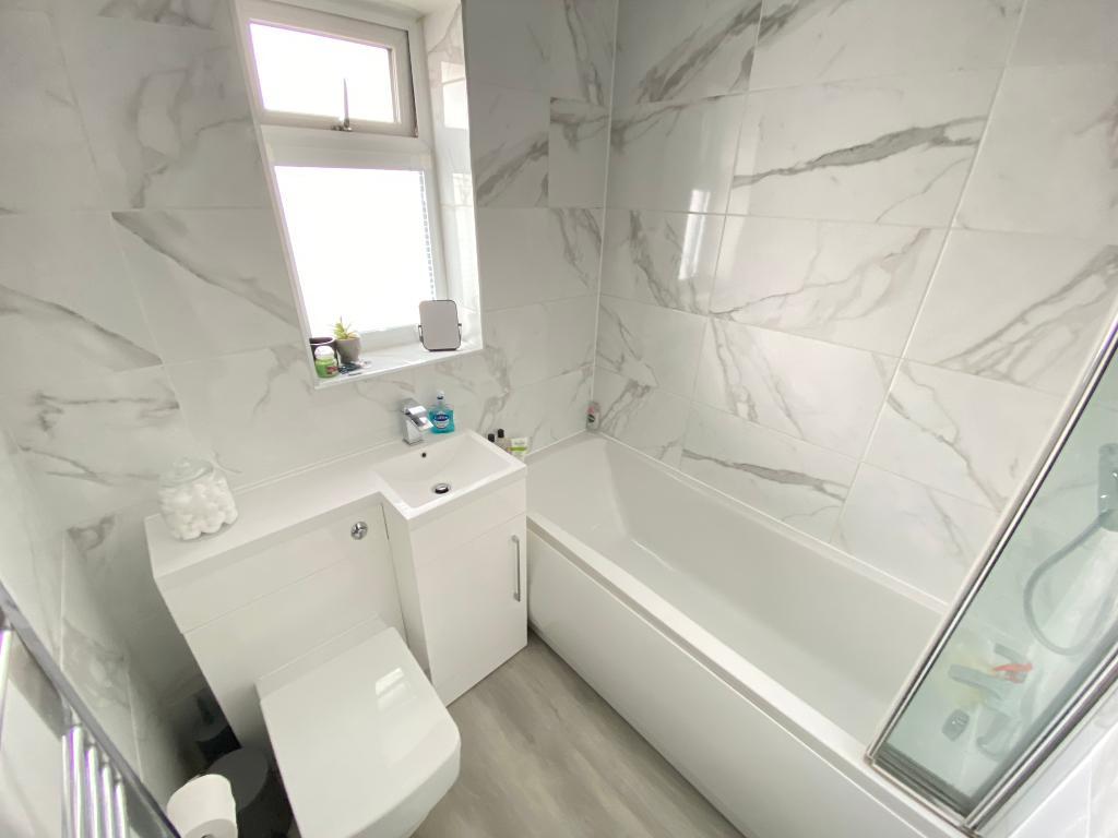 5' 2'' x 5' 10'' (1.6m x 1.8m) Double glazed frosted window to front elevation. ????? and low level w/c. Panel bath with waterfall shower, shower attachment and folding shower screen. Fully tiled walls. Laminate flooring and a heated towel rail.