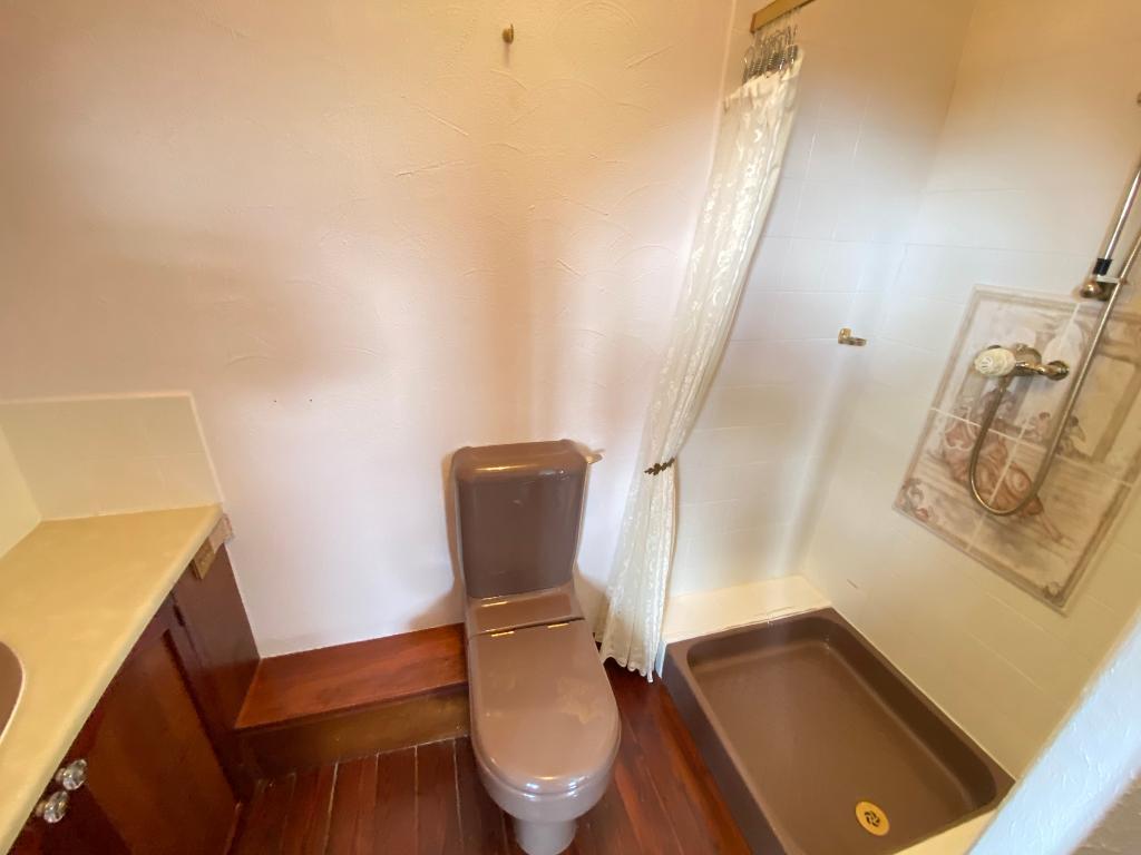 8' 6'' x 3' 3'' (2.6m x 1m) Vanity wash hand basin with low level w/c. Shower cubicle. Floor boarding.