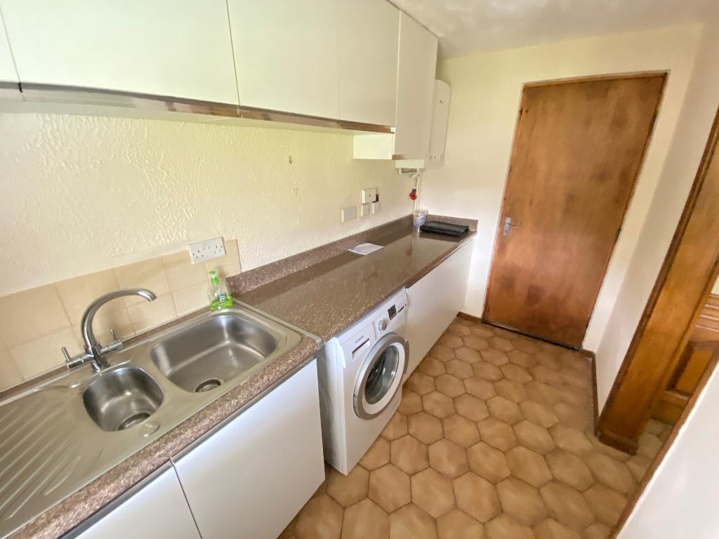 9' 10'' x 5' 2'' (3m x 1.6m) Door to garage. Roll top work surfaces with a sink, drainer and mixer tap. Plumbing for a washing machine. Boiler to wall. Tiled flooring and power points.