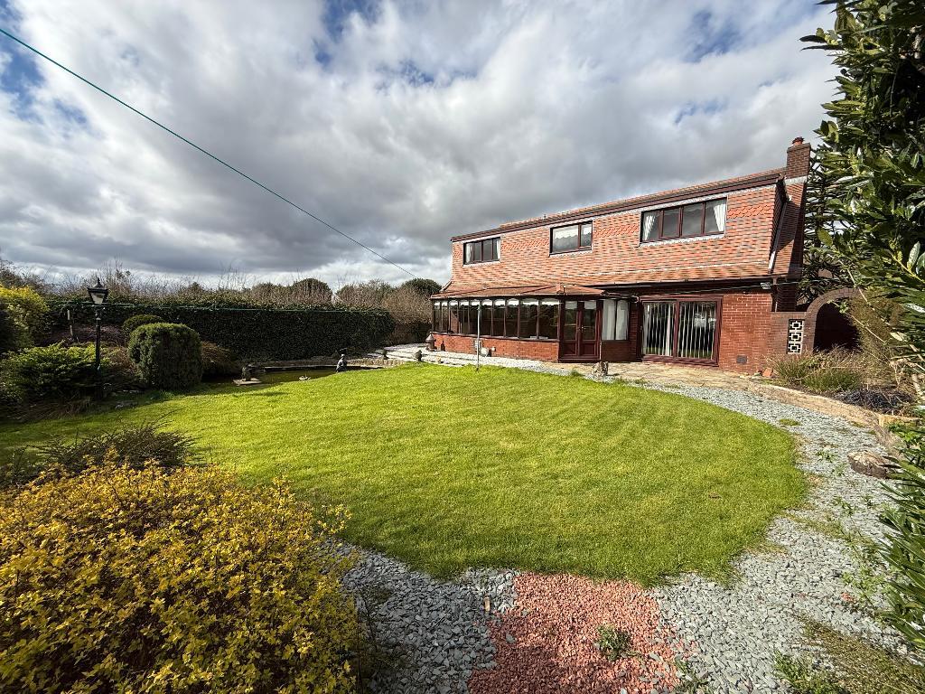 To the front, a tarmac driveway for multiple vehicles. To the rear, a laid to lawn garden, pond, shrubbed boarders and fence panelling.