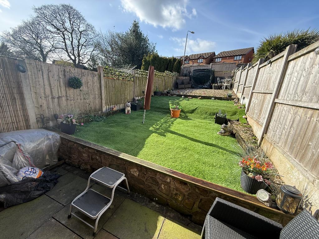 To the front a brick paved drive with off road parking. To the rear, a tired garden with am artificial lawn, gravelled patio seating area and fence panelling.