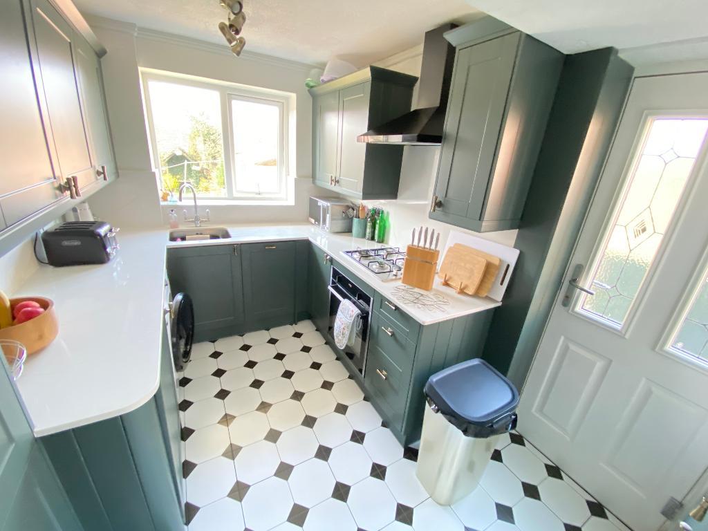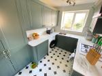 7' 2'' x 9' 10'' (2.2m x 3m) Double glazed window to rear elevation and door to side elevation. Granite work surfaces with a sink, drainer and mixer tap. A range of matching wall and base units with drawers. Electric oven and four burner hob with extractor fan. Plumbing for a washing machine. Under stairs storage. Tiled flooring, power points and a wall mounted radiator.